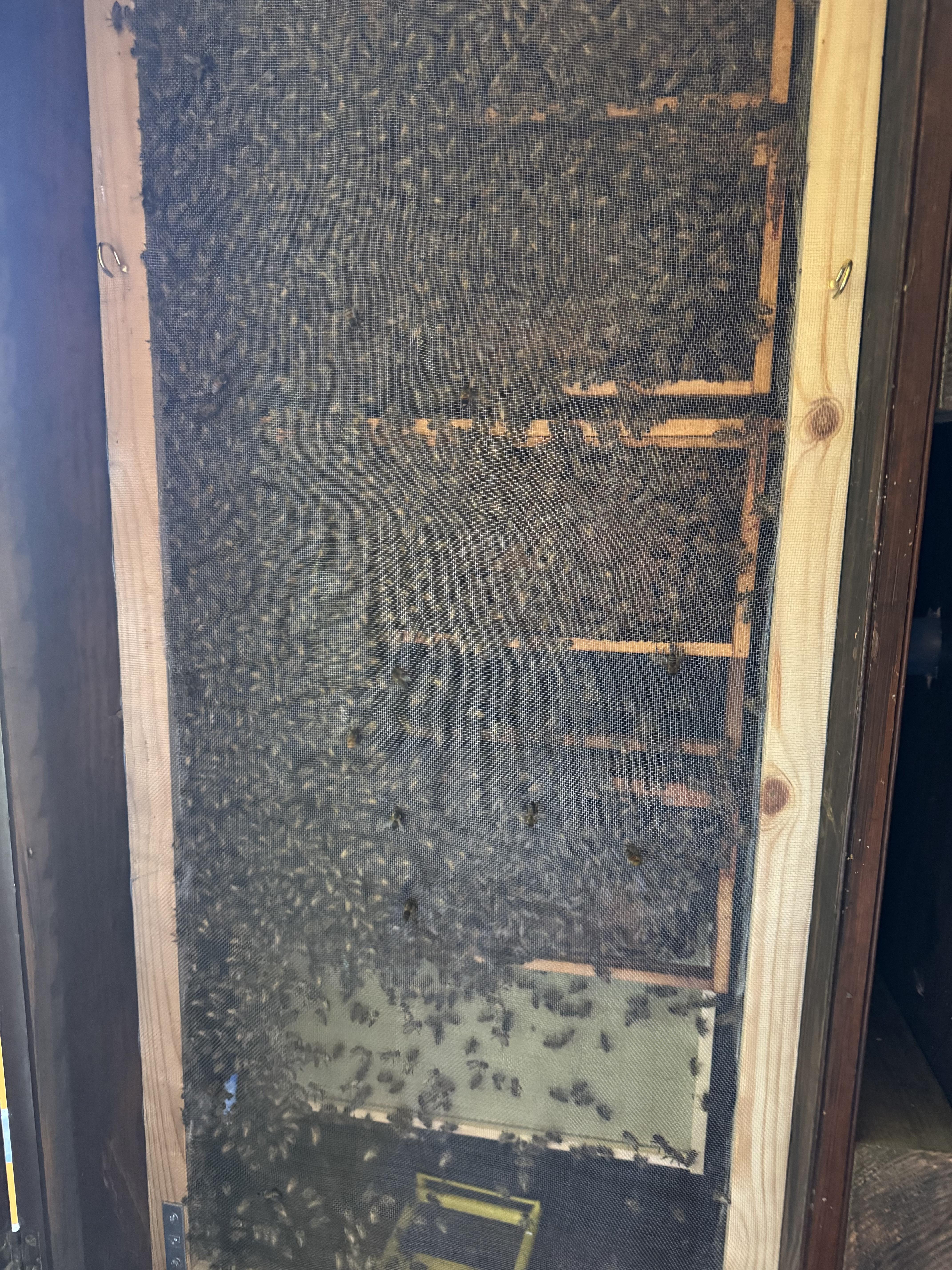 The Observation healing hive containing the bees can be fully closed, still enabling the sound and vibration of the bees to be heard and felt, or the glass doors opened releasing the aroma of the hive, honey, beeswax and propolis. The bees are safely behind a layer of mesh screening and glass doors. Guests can request to wear a beesuit and use a mosquito net over the bed to feel extra safe.